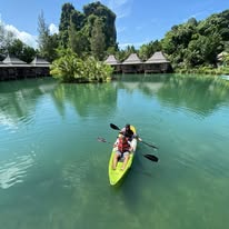 A large scenic swimming pool with the background of five beautiful mountains, connecting to the pool bar and restaurant. Moreover, kayaking, biking, and sightseeing are ideally recommended activities for families, couples, friends, or even a solo.